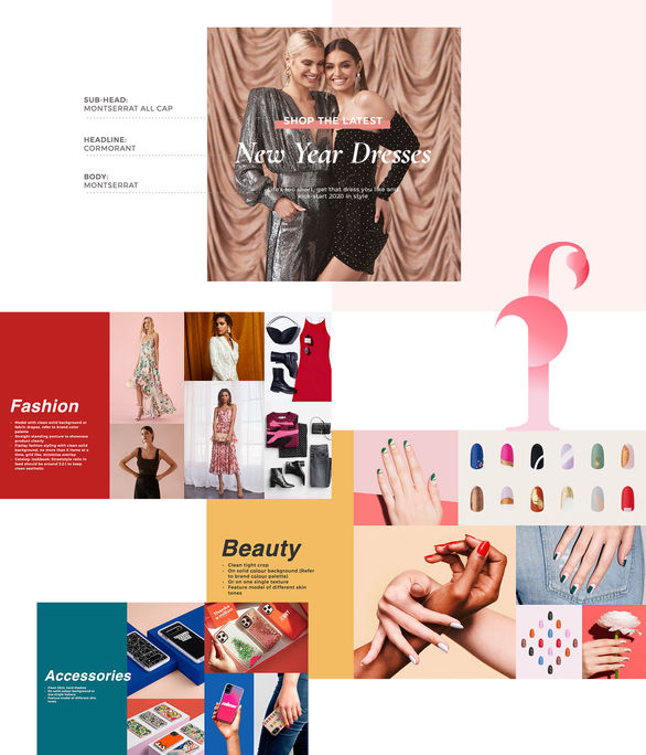 Began with a hip-hop jewelry brand & a female fashion marketplace— I did this year-long exercise to build an updated & simplified framework of "digital brand book" for 300+ DTC brands, including a grid system simply as a template for 9:16 interactive creatives. I was hoping to redefine the importance of social-media-driven branding for this new emerging industry.