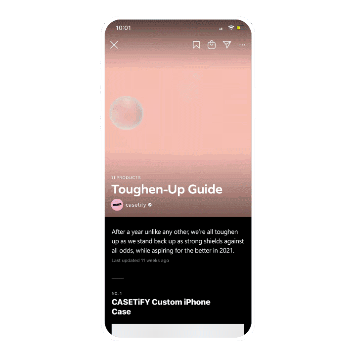 Retarget with Product Ads disguised as Mesmerizing 3D Arts. CASETiFY retargets those who engaged prior with the challenge with product ads, done unconventionally to maximize sales conversions. All product ads in 3D, one of the most popular genres of content on IG. This visual-impactful way of storytelling differentiates the brand greatly from its competitors.